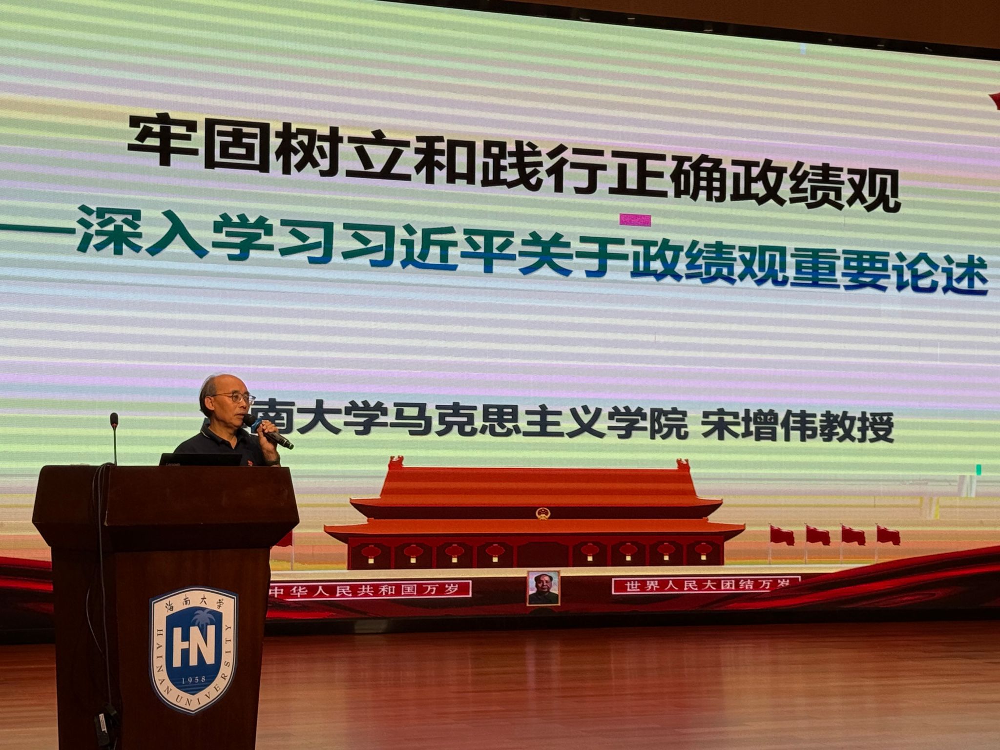 报告会上,宋增伟教授以“牢固树立和践行正确政绩观——深入学习习近平关于政绩观重要论述”为题,从五个方面作了系统全面、深入浅出的专题辅导。宋教授从《政绩观论述摘编》的学习背景和内容要求进行阐述,指出当前部分干部存在的思想、行动、能力、作风方面的问题,阐释了习近平总书记提出的“五重五轻”错误政绩观,明确政绩观学习需聚焦“政绩为谁而树、树什么样的政绩、靠什么树政绩”三大核心问题;从党的性质宗旨、人民美好生活向往、中国式现代化推进等维度,阐述了树立和践行正确政绩观的重要意义;全面解读了正确政绩观的丰富内涵,强调党性对树立和践行正确政绩观的决定性作用,明确“以人民为中心”的政绩观核心要求;同时,提出了健全防范和纠治政绩观偏差的五大工作机制,为实际工作开展提供了方法路径;最后,围绕强化责任担当、争做爱岗敬业模范提出要求,分享做好工作需兼具热情、专业、责任和使命,党员干部要从思想、政治、行动、业务能力四个层面彰显担当精神,做到政治素质过硬、坚持党建引领、博专结合、严明纪律、理论联系实际。宋增伟教授还结合学院发展实际,鼓励全院教职工调整心态、坚定理想信念,立足岗位主动学习提升,树立正确的职业观念和价值观。